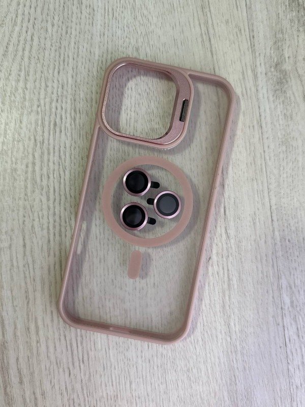 Esta funda tiene DE TODOOOO!!! Es linda, tiene magsafe, stand y vidrios para cámara, que más necesitas?.